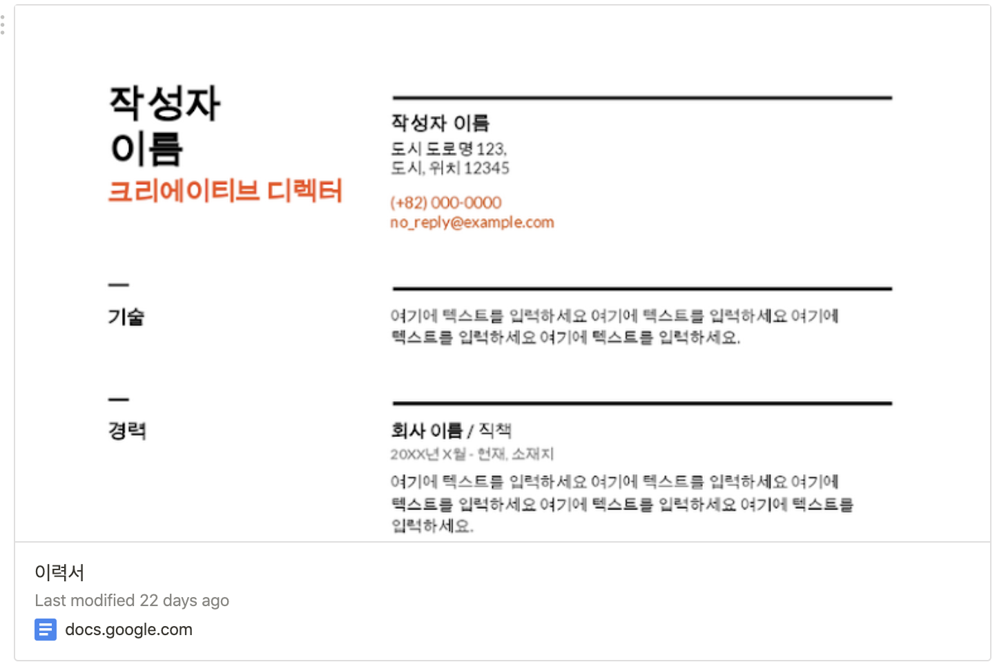 그리고 이대로 이력서를 첨부하게되면 아래처럼 미리보기와 설명이 같이 나오게 됩니다.