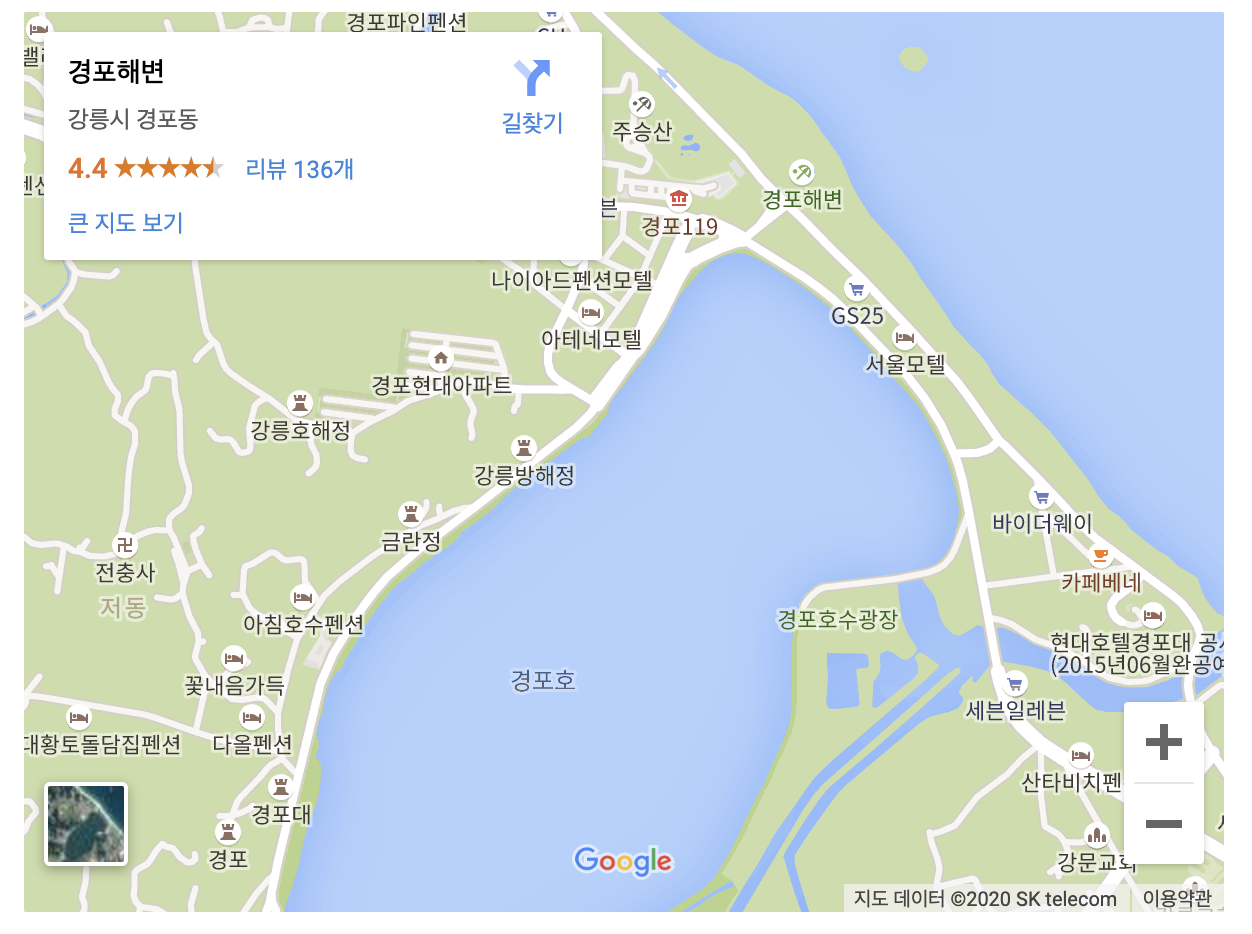 구글 지도에서 경포해변을 검색한 뒤 URL을 입력해주니 아래와 같이 바로 표시가 됩니다.