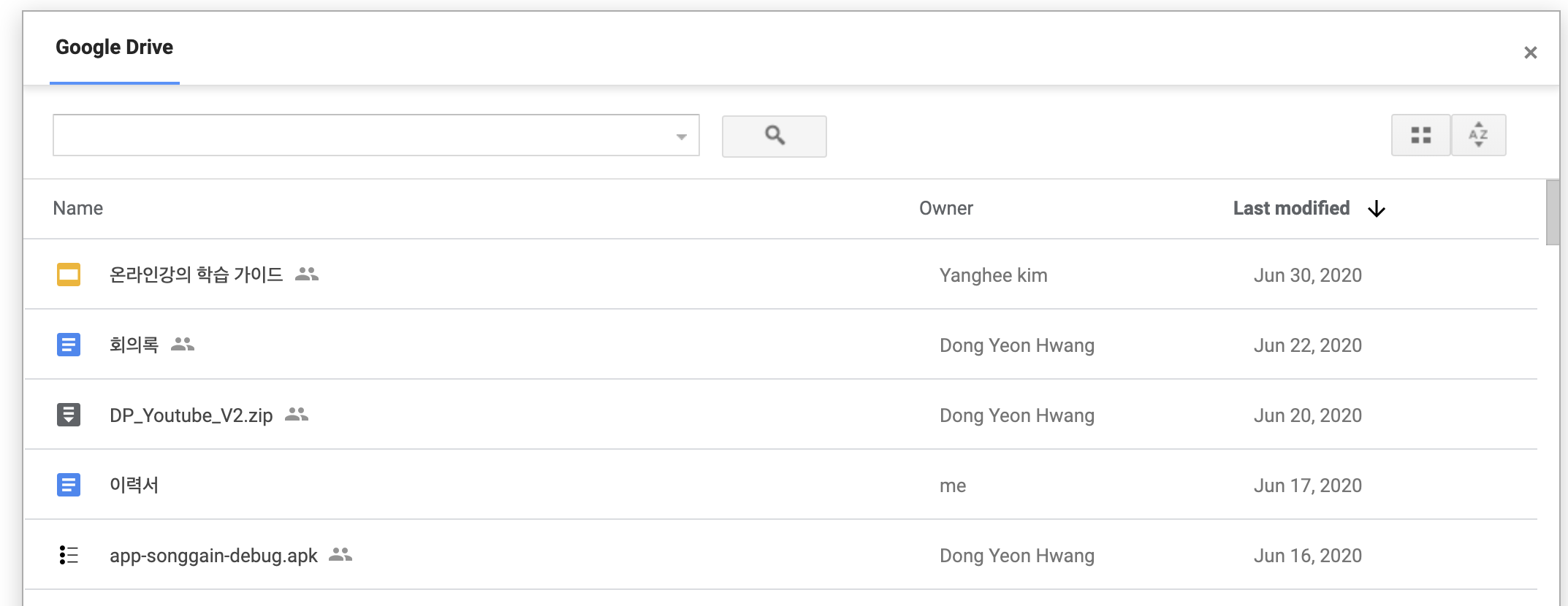 Browse Google Drive에서 제 계정을 클릭하면 아래처럼 구글 드라이브가 나오게 됩니다.