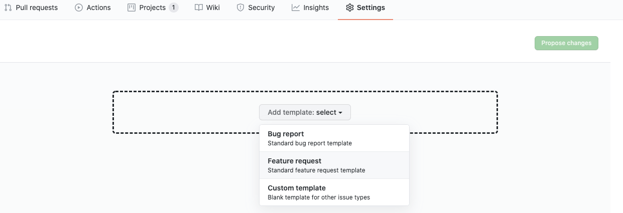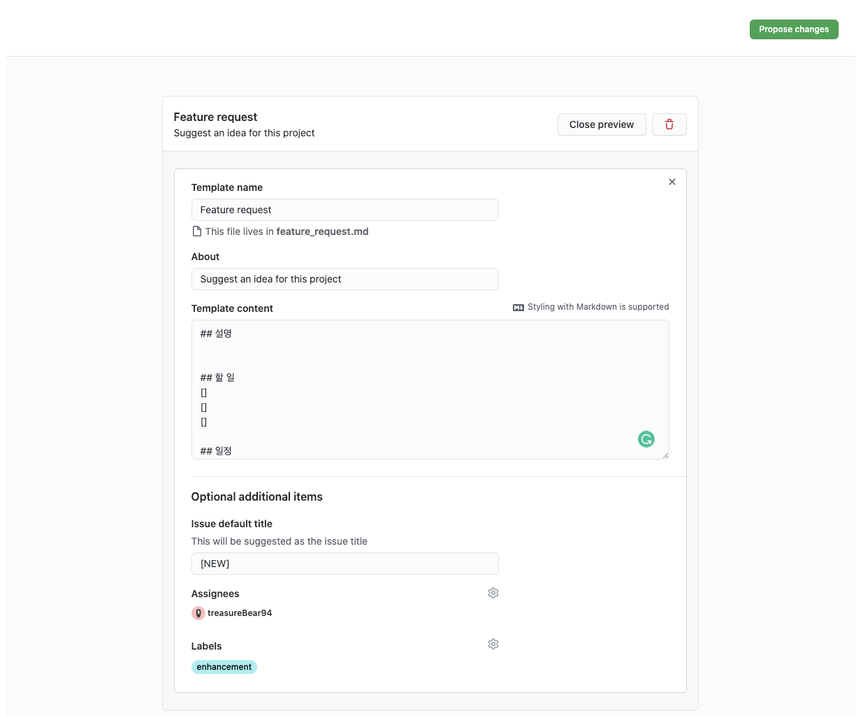 이슈 템플릿을 만들어 등록할 수도 있습니다.