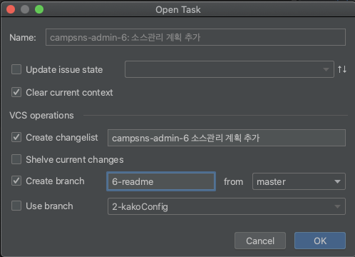 - IntelliJ에서 이슈 기반의 Task와 브랜치 만들기