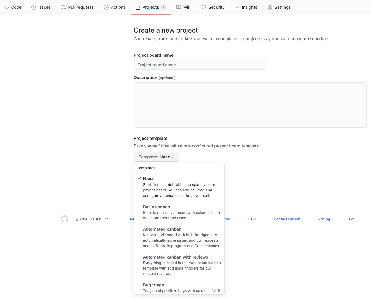 Automated kanban with reviews 는 Automated kanban과 비슷한데 여기서 Review in progress 와 Reviewer approved 컬럼이 추가됩니다.