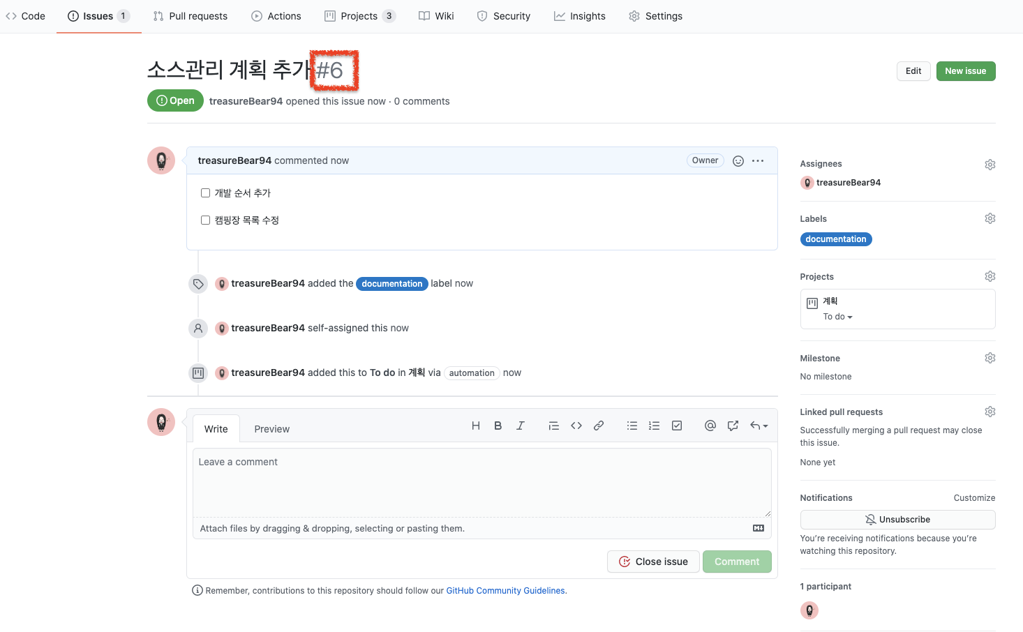 1. Github에서 이슈 등록하기