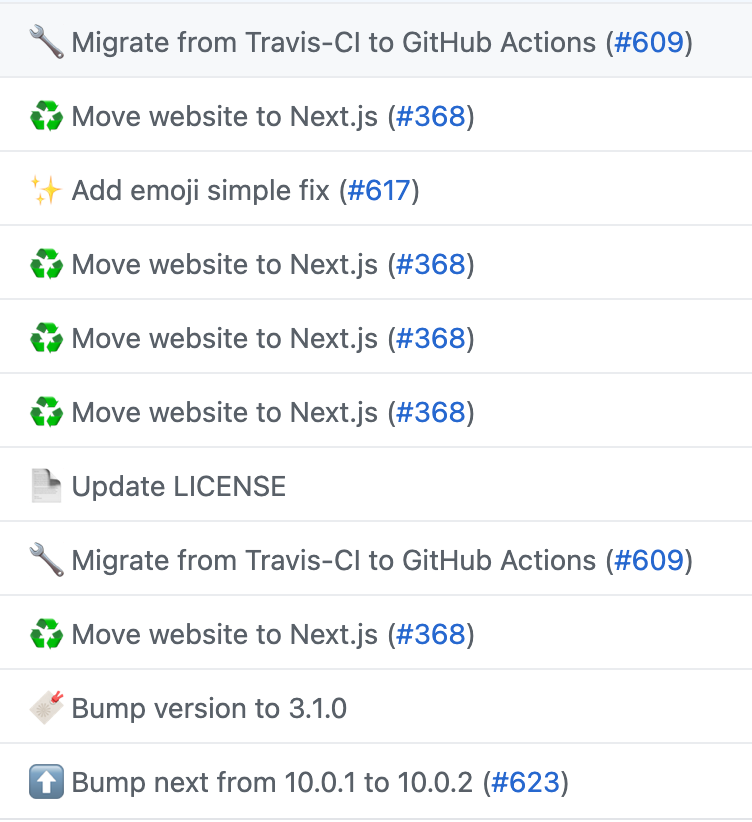 해당 github의 커밋로그를 보면 앞에 이모지를 통해 커밋 내용을 명확하게 파악할 수 있습니다.