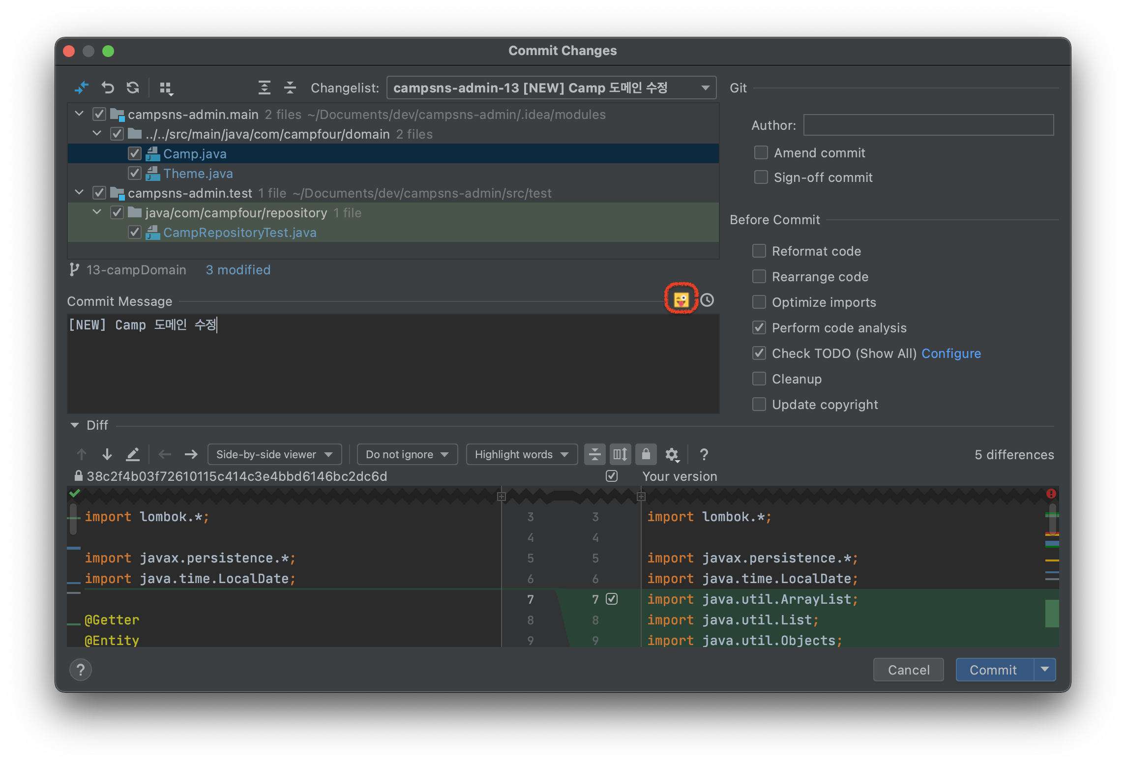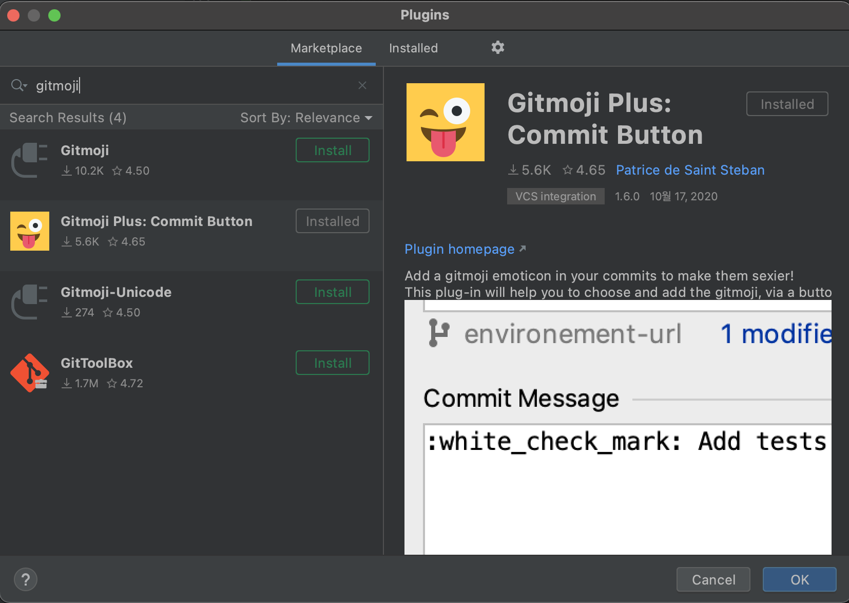 설치하고 커밋창에서 보면 gitmoji 이모티콘이 나옵니다. 안나오면 인텔리제이를 재시작해주세요.