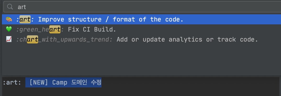이제 gitmoji 버튼을 눌러서 사용가능합니다.