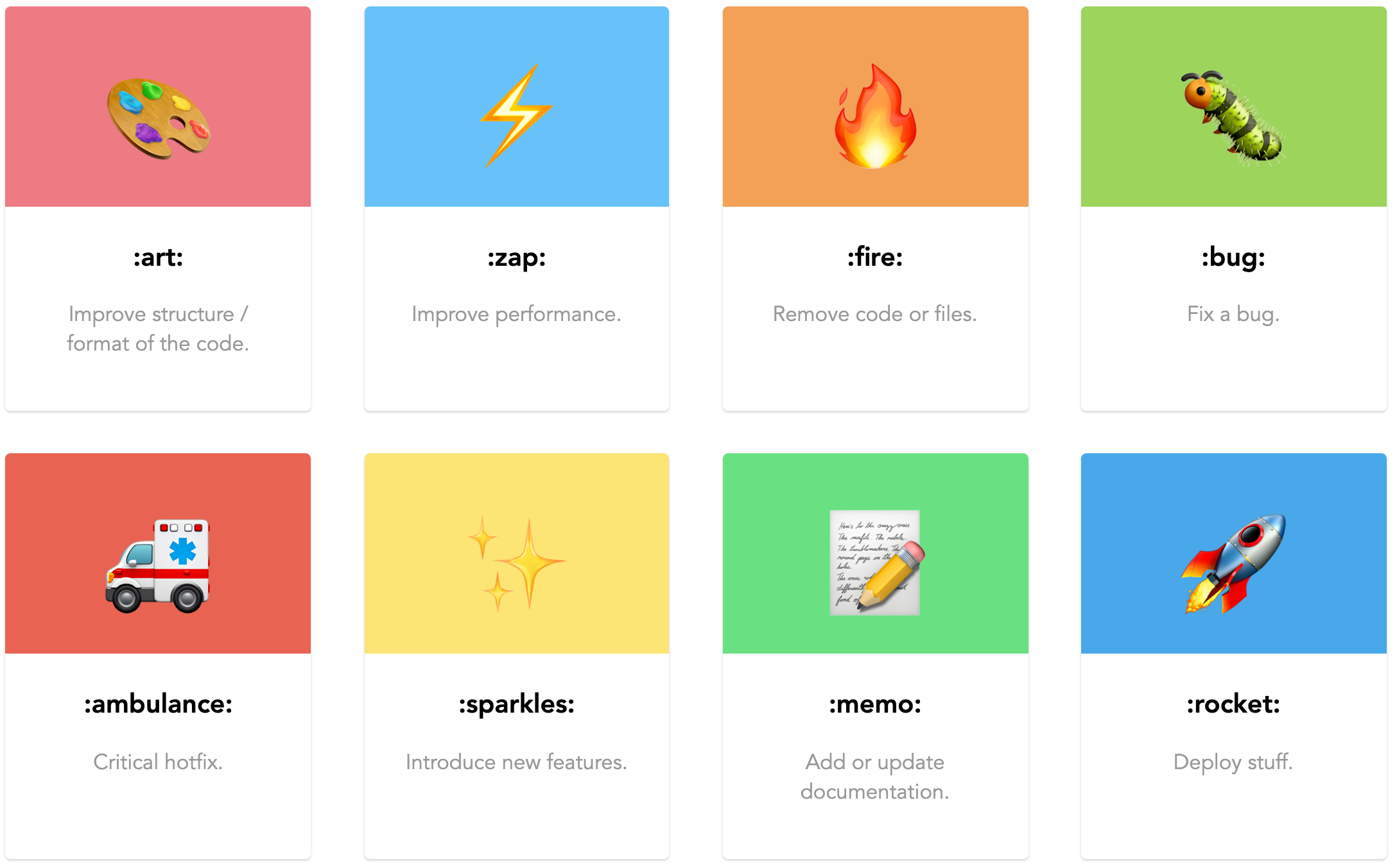 | 💩 | :poop: | 똥싼 코드 | Write bad code that needs to be improved. |